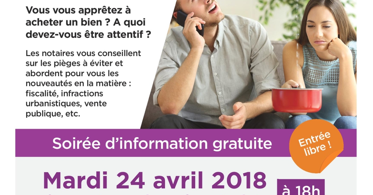Rendez-vous le mardi 24 avril 2018 à 18h, dans la maison du notariat de votre province, pour une soirée d'information gratuite