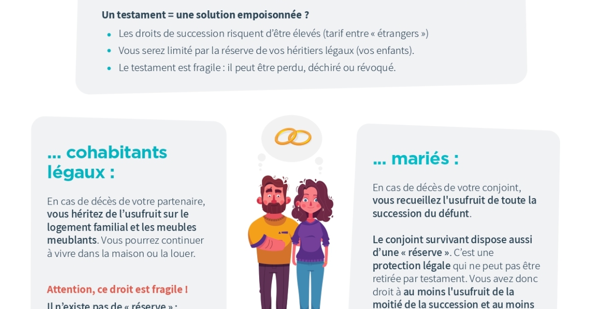 ? De quoi hériterait votre partenaire si jamais vous décédez ? Sera-t-il protégé ? Pourra-t-il continuer à vivre dans la maison familiale ou bénéficier d'une pension de survie ?