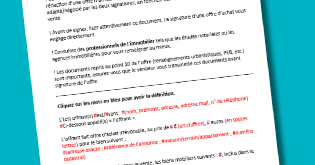 Modèle d'offre d'achat pour la Wallonie à télécharger