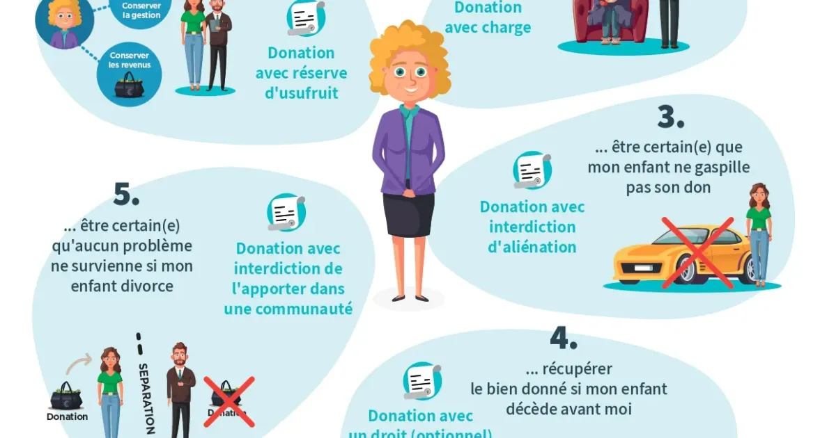 Vous envisagez de faire une donation ? Mais vous hésitez peut-être car vous avez peur que l'argent soit gaspillé, ou que vous ayez encore besoin d'argent supplémentaire pour faire face à certaines dépenses ? Pas de souci, une donation peut être adaptée à certains de vos souhaits. Les possibilités sont nombreuses, les solutions doivent être adaptées à chaque cas personnel, n'hésitez pas à demander conseil à un notaire.